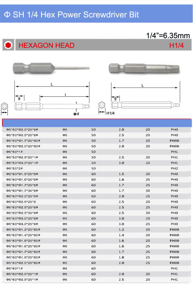 Item: Hex Power Screwdriver Bits, 1/4 Hex