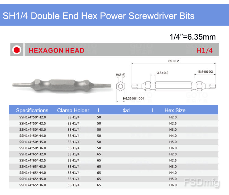 Item: Double End Hex Power Screwdriver Bits, 1/4 Hex